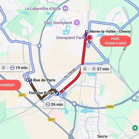 Den närmaste flygplatsen är Paris Charles de Gaulle, belägen ca 40 km från lägenheten M1 Disney Bella Vita, och busshållplatsen Louis de Vion ligger 5 minuters promenad bort.
